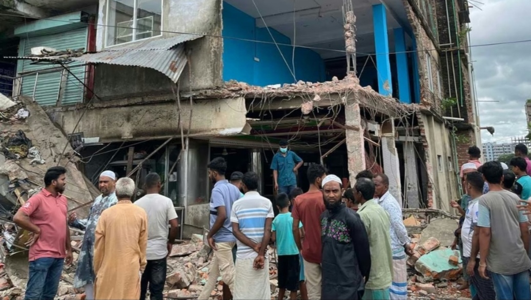 নোয়াখালীতে খালের ওপর নির্মিত চারতলা ভবন গুঁড়িয়ে দিলেন -ইউএনও