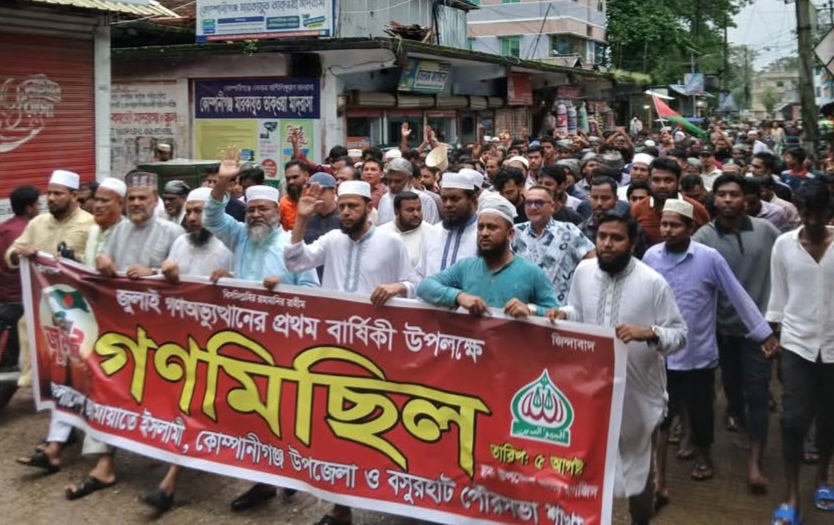 ঐতিহাসিক গণঅভ্যুত্থানের বর্ষপূর্তিকে ঘিরে মঙ্গলবার (৫ আগস্ট) বিকালে ৫টায় নোয়াখালীর কোম্পানীগঞ্জে বাংলাদেশ জামায়াতে ইসলামী কোম্পানীগঞ্জ উপজেলা শাখার উদ্যোগে এক গণমিছিল অনুষ্ঠিত হয়েছে।