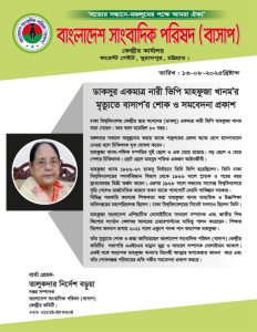 ডাকসুর একমাত্র নারী ভিপি মাহফুজা খানমের মৃত্যুতে বাসাপ’র শোক