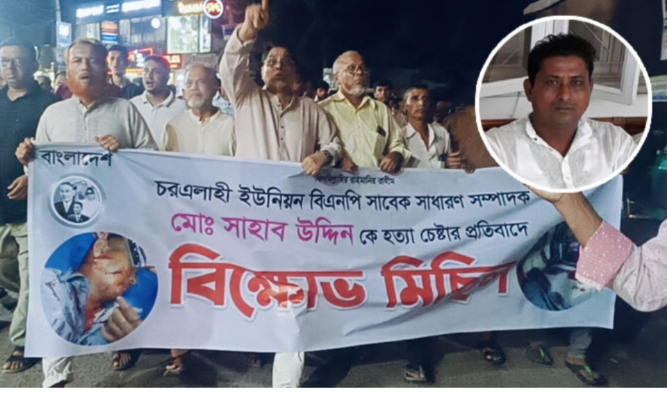 সংবাদ সম্মেলনে মো. ফখরুল ইসলাম বলেন, বিএনপির সহ-পল্লী উন্নয়ন ও সমবায় সম্পাদক বজলুল করিম চৌধুরী আবেদ, উপজেলা বিএনপির সাবেক আহ্বায়ক নুরুল আলম শিকদার ও সদস্যসচিব মাহমুদুর রহমান রিপনের ছত্রছায়ায় চরএলাহীর তোতা চেয়ারম্যানের ছেলেরা চাঁদাবাজি করে আসছে। এসবের প্রতিবাদ করায় আজ (রোববার) বিএনপি নেতা সাহাব উদ্দিনকে তারা হত্যা চেষ্টা করেছে। অবিলম্বে এ সন্ত্রাসীদের গ্রেফতারের দাবি জানাই।