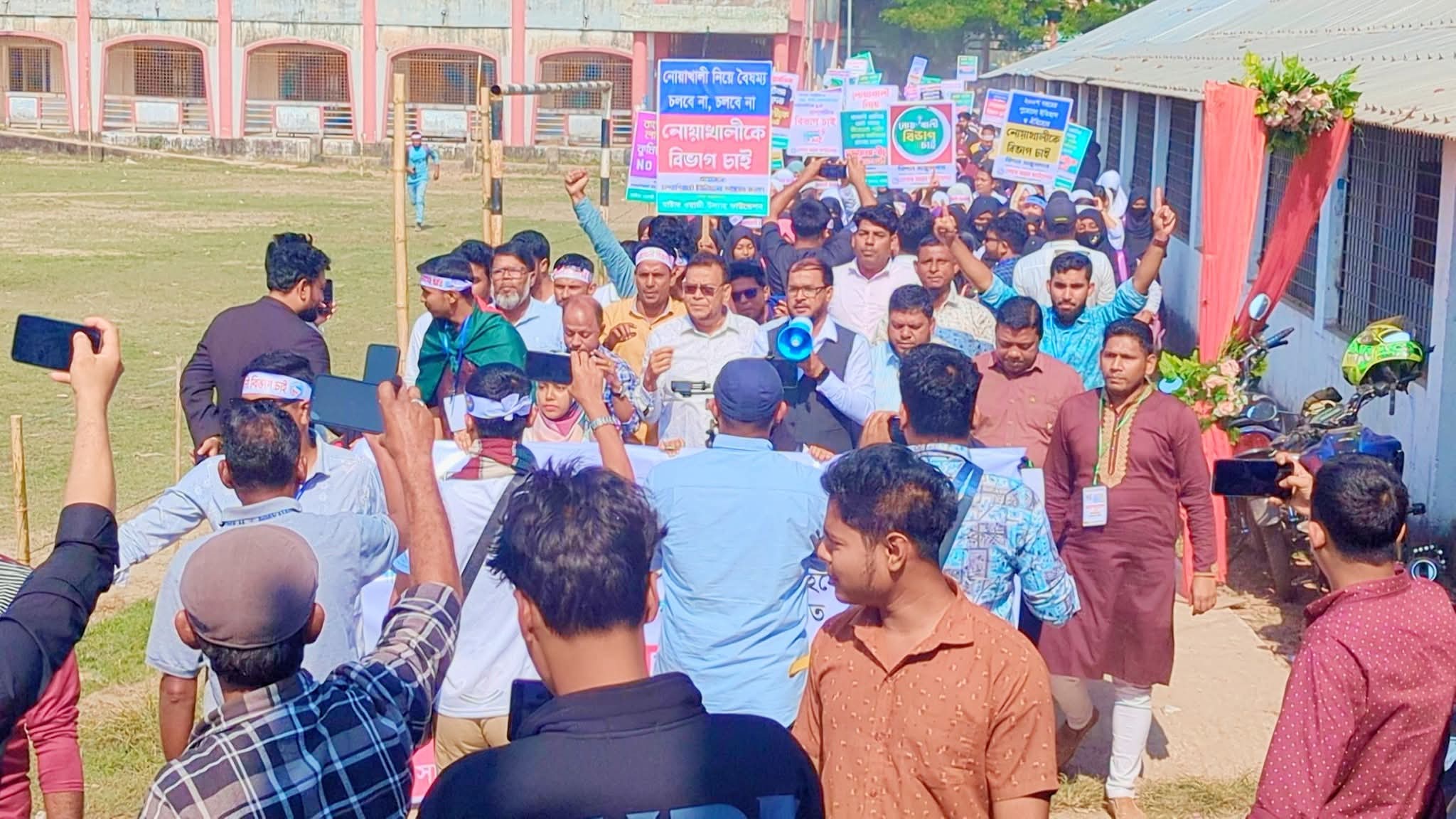 সকালে চাপরাশিরহাট ইসমাইল ডিগ্রি কলেজ মাঠ প্রাঙ্গণে জড়ো হন হাজারও শিক্ষার্থী, স্বেচ্ছাসেবক ও বিভিন্ন শ্রেণি-পেশার মানুষ। সেখান থেকে বিক্ষোভকারীরা বৃহত্তর নোয়াখালীবাসীর প্রাণের দাবি—নোয়াখালী বিভাগ—বাস্তবায়নের লক্ষ্যে মিছিল নিয়ে চাপরাশিরহাট বাজার প্রদক্ষিণ করে পুনরায় কলেজ মাঠ প্রাঙ্গণে ফিরে আসেন।