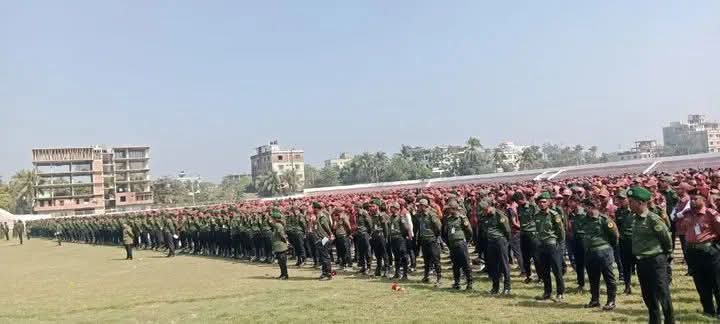 বুধবার (৫ ফেব্রুয়ারি ২০২৬) নোয়াখালী জেলা শহীদ ভুলু স্টেডিয়ামে মোতায়েনকৃত আনসার ও ভিডিপি সদস্য-সদস্যাদের নিয়ে এ বর্ণাঢ্য ও সুশৃঙ্খল হাজিরা প্যারেড আয়োজন করা হয়।