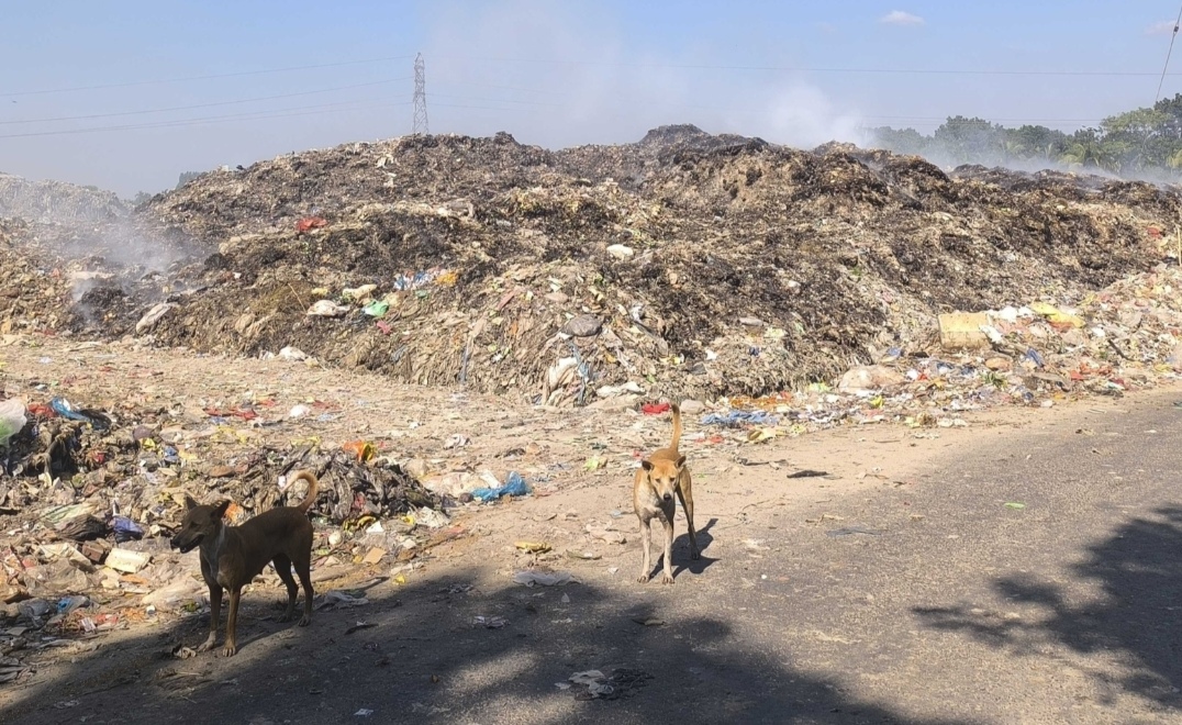 সীমানা প্রাচীর না থাকায় রাস্তার কুকুর ও অন্যান্য প্রাণী ভাগাড় থেকে পচা আবর্জনা, এমনকি মরা মুরগিসহ বিভিন্ন ময়লা আশপাশের গ্রামে ছড়িয়ে নিয়ে যাচ্ছে।