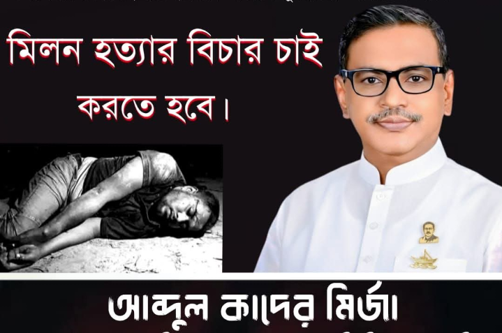 স্ট্যাটাসে কাদের মির্জা অভিযোগ করেন, প্রতিপক্ষের লোকজন নিরাপত্তার আশ্বাস দিয়ে পরিকল্পিতভাবে মিলনকে বাড়িতে আনার ব্যবস্থা করে। পরে পথিমধ্যে তাকে মারধর করে অর্ধমৃত অবস্থায় তুলে দেওয়া হয়, এবং পরবর্তীতে নির্যাতনের ফলে হাসপাতালে নেওয়ার পথে তার মৃত্যু হয়। নিহত মিলন স্ত্রী ও এক সন্তান রেখে গেছেন বলেও জানান তিনি।