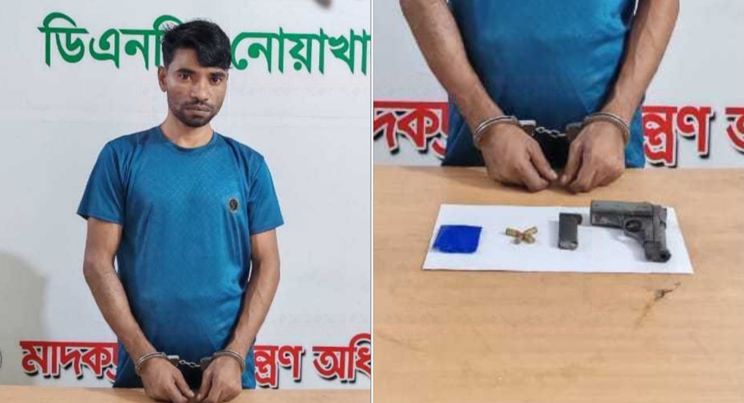 নোয়াখালীতে পিস্তল-গুলিসহ মাদক কারবারি গ্রেপ্তার