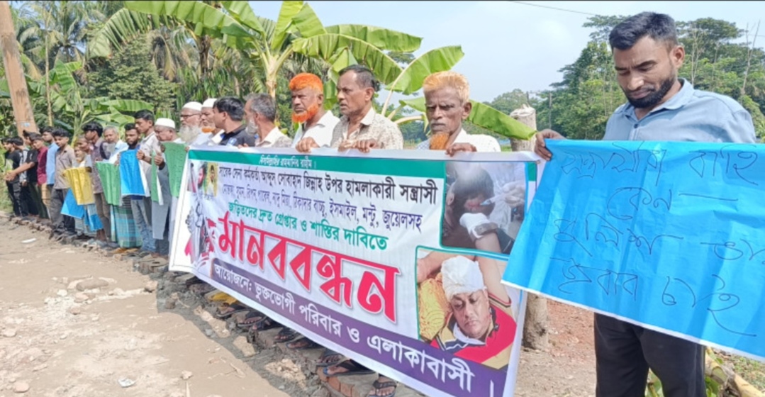 নোয়াখালীতে সাবেক সেনা কর্মকর্তাকে হামলা, বিচারের দাবিতে মানববন্ধন